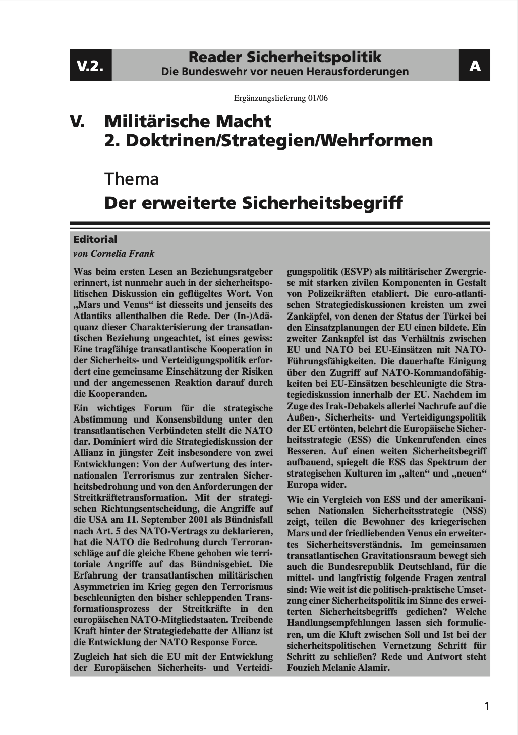 Reader Sicherheitspolitik, Ergänzungslieferung 1/01, IV.1. A, S. 17-24