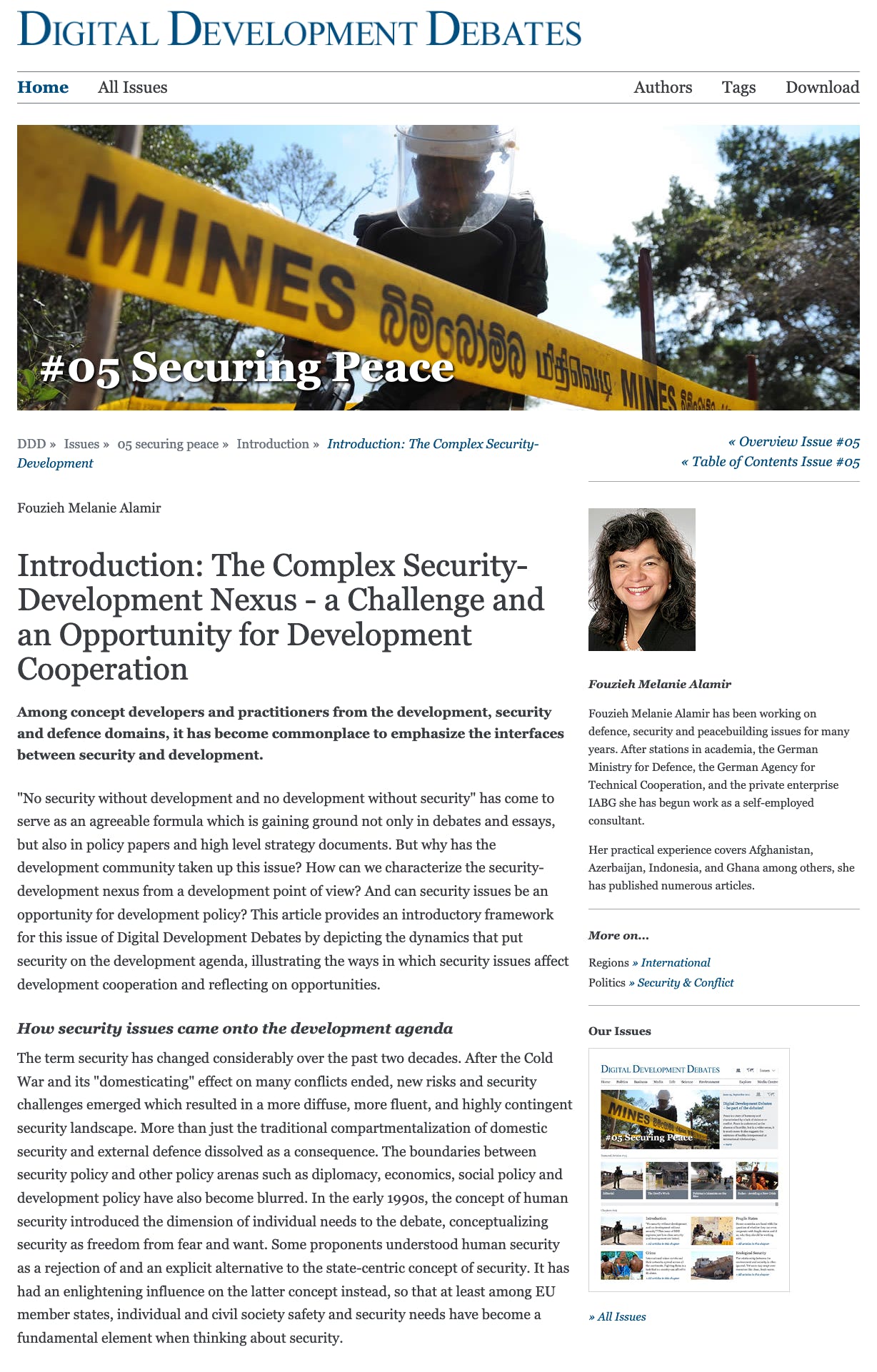 It has become commonplace to emphasize the interconnection between security and development in the context of debates on comprehensive approaches to international crisis management and peacebuilding. “No security without development and no development without security” has come to serve as an agreeable formula which gained currency not only at round tables and in essays but also in policy papers and high- level strategy documents. But what exactly do we mean by the security-development nexus? What practical challenges does it imply and are we fit to tackle them? Following these three questions, this article analyses the understanding and practical challenges from development and military points of view in detail.